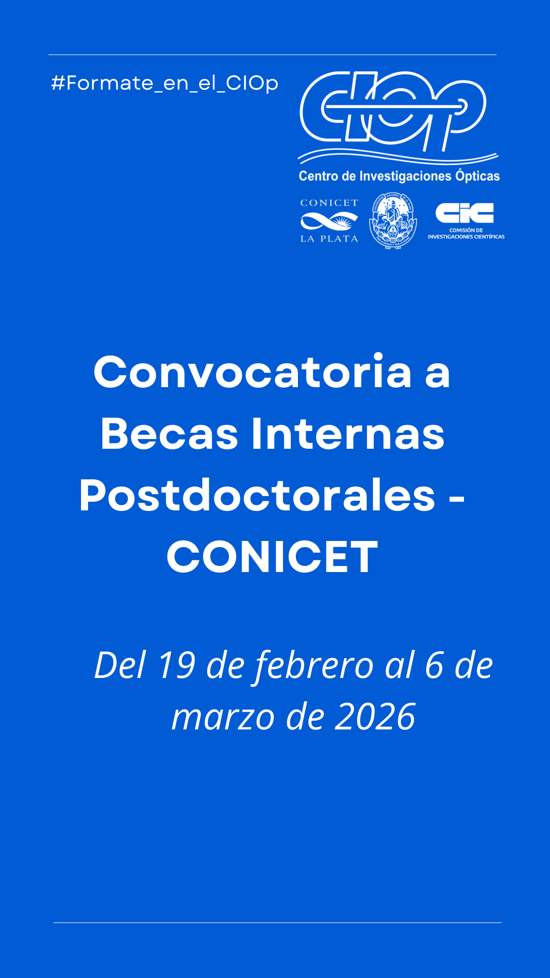 Buscamos candidatas/os para Becas Internas Postdoctorales con lugar de trabajo en el CIOp (Centro de Investigaciones Ópticas).