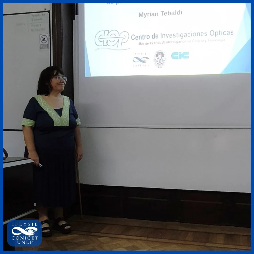 El pasado 14 de noviembre, nuestra directora del CIOp, la Dra. Myrian Tebaldi, brindó una charla en el Instituto de Física de Líquidos y Sistemas Biológicos (IFLYSIB), en la cual presentó el tema: "Tecnología de speckle dinámico como herramienta no invasiva para el estudio de procesos biológicos e industriales".