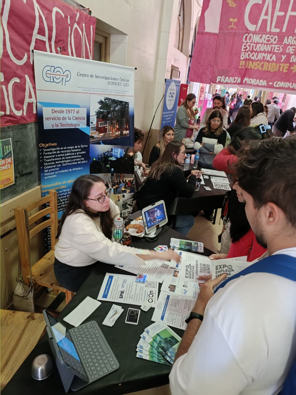 El pasado martes 7 de octubre, el CIOp formó parte de la Expo Empleo Exactas, organizada por la Facultad de Ciencias Exactas de la Universidad Nacional de La Plata, a través de su Centro de Estudiantes, la Prosecretaría de Vinculación Tecnológica y la Prosecretaría de Coordinación Institucional de la UNLP.