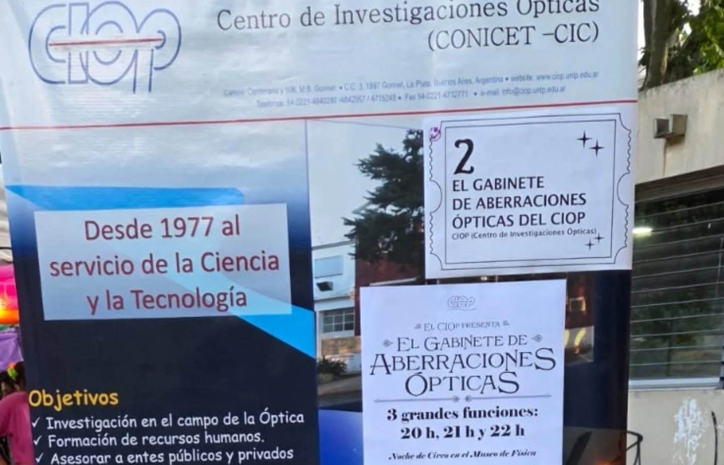 En esta edición, el CIOp participó con “El Gabinete de Aberraciones Ópticas”, un espectáculo lleno de ciencia, asombro y curiosidades ópticas que compartimos con el público. Además, exhibimos una colección reservada de objetos históricos de óptica, piezas únicas que esa noche pudieron ser apreciadas de cerca.