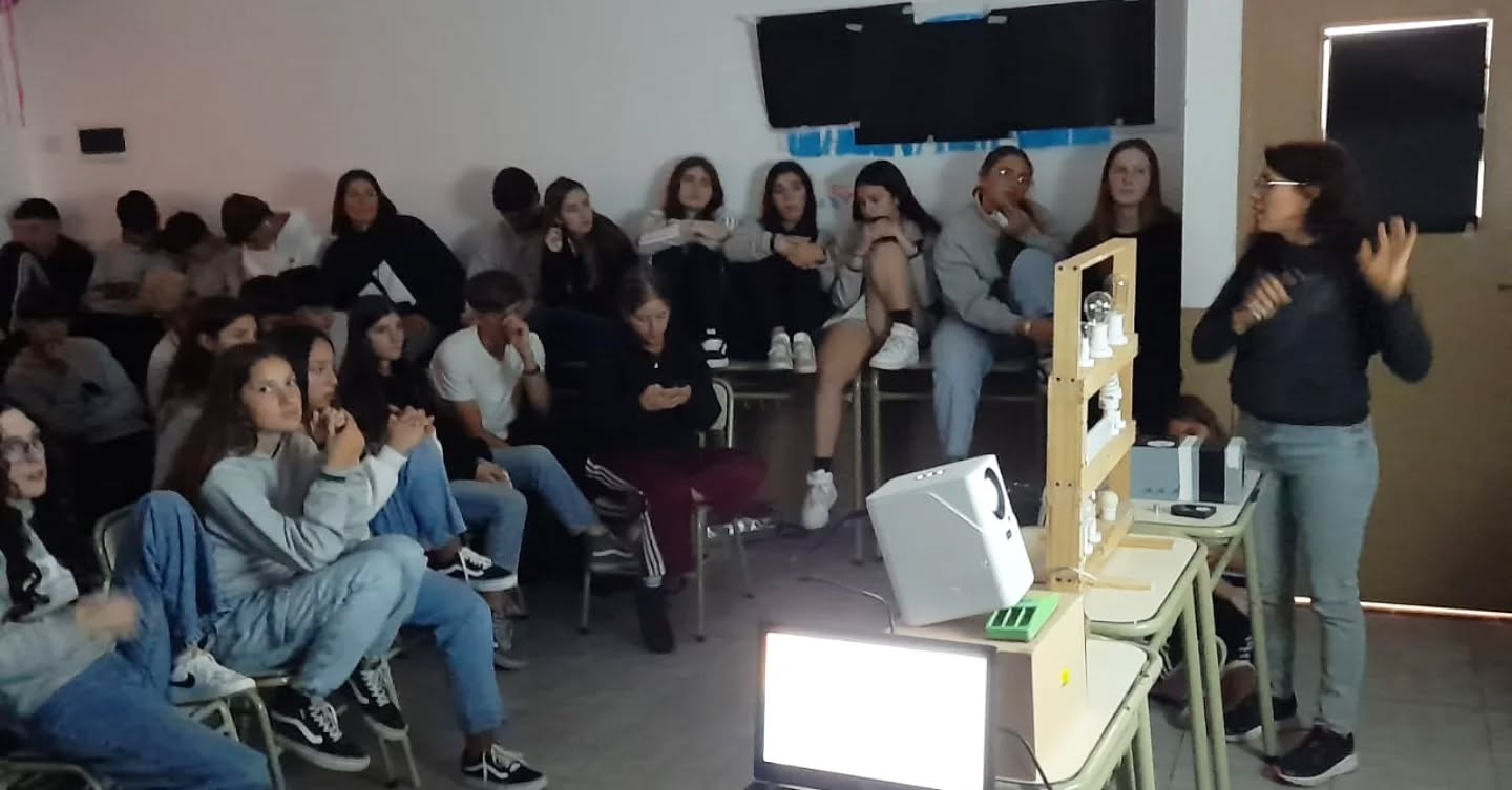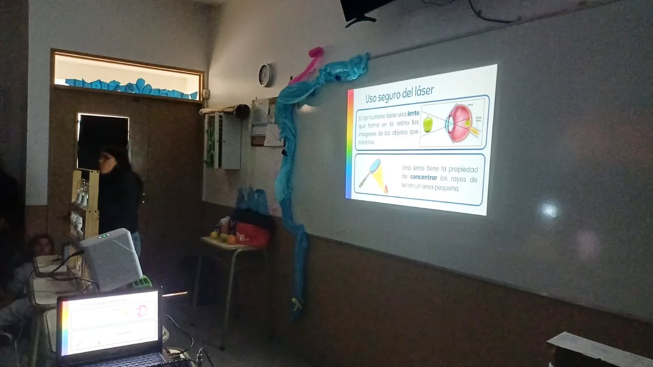 Durante la jornada, se brindó una charla y se realizaron experiencias interactivas con estudiantes de 2 cursos de 3er. año del nivel secundario, abordando temas de óptica, fotónica, láser y espectroscopía.