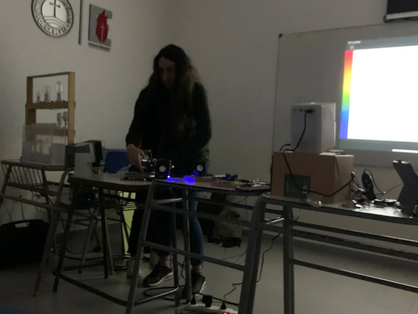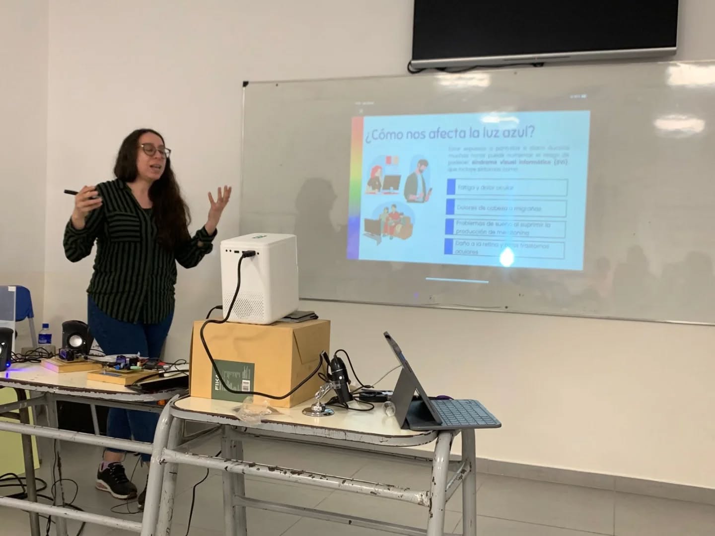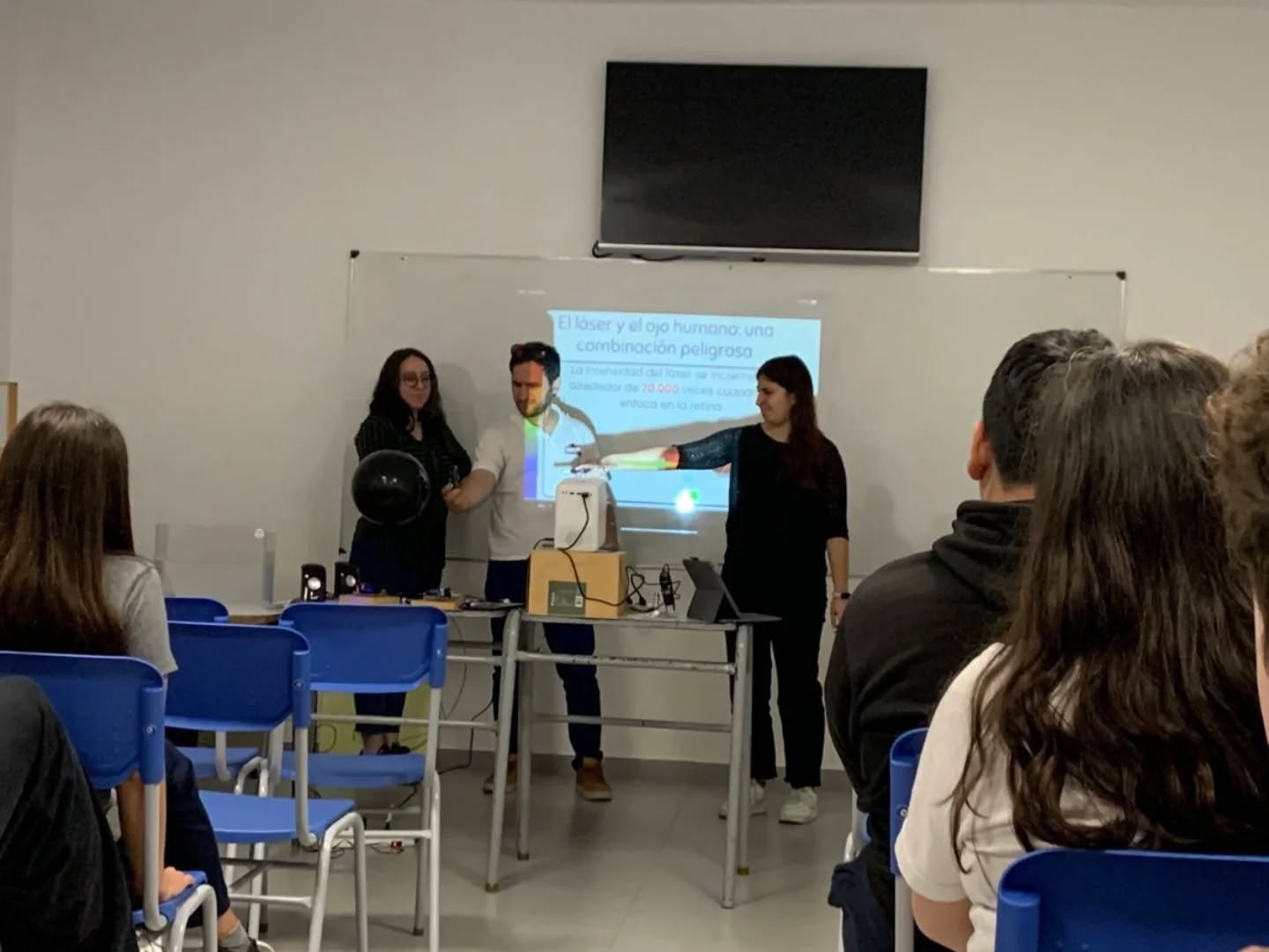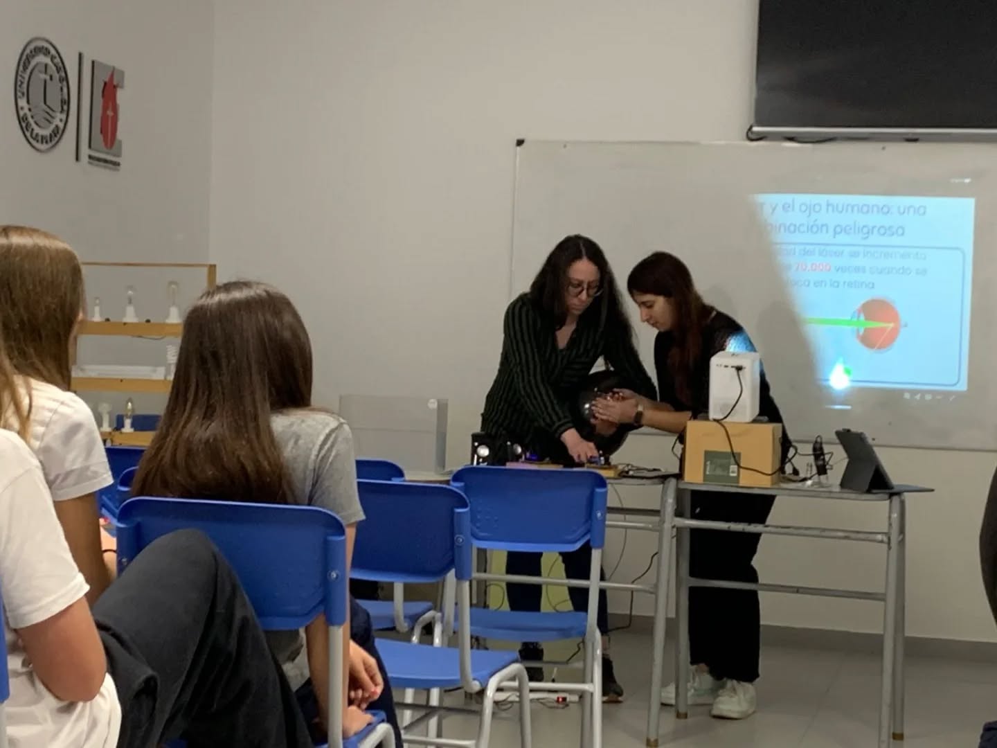 Durante la jornada, compartieron con los estudiantes de 1ro., 2do. y 3er. año, realizando diversos experimentos y demostraciones sobre las fuentes de luz y cómo se producen. Se hizo especial énfasis en las medidas de seguridad al manipular láseres, además de explicar cómo se forman los colores, cómo los percibimos y cuáles son los efectos de la luz azul en la vida cotidiana.